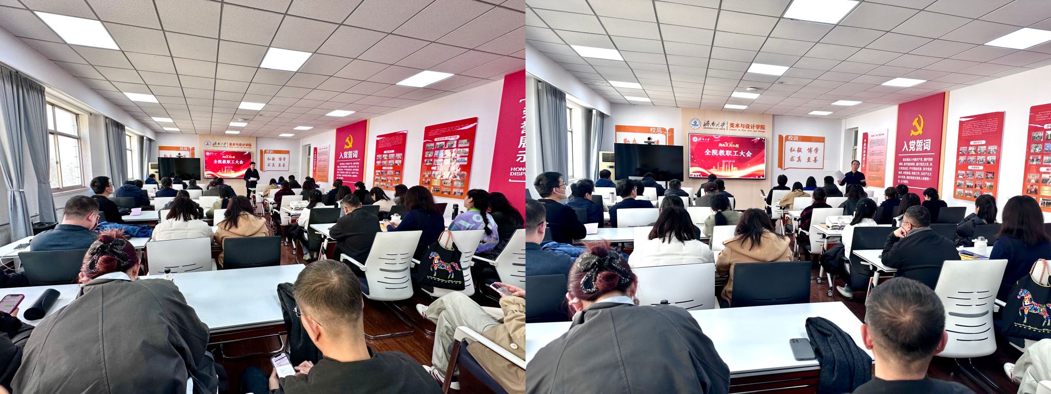 会议高度肯定了全体教职工的辛勤奉献与学院发展取得的成绩,强调新学期将继续营造团结奋进氛围,凝聚发展合力,激励全体教师坚守育人初心、勇担时代使命,共同推动学院事业发展迈出新的坚实步伐,为实现学校“十五五”良好开局贡献“美院力量”。